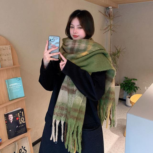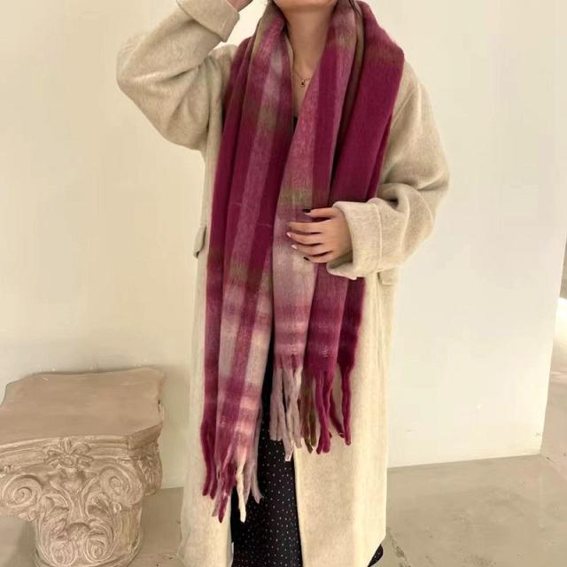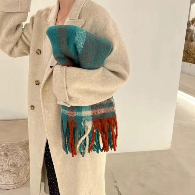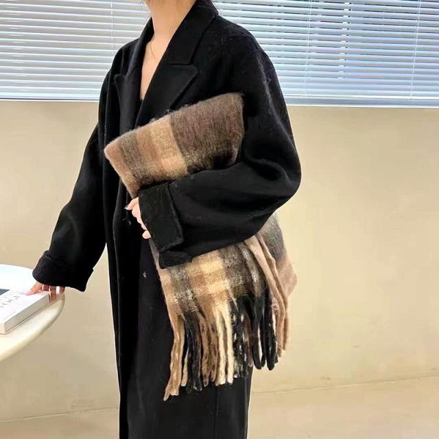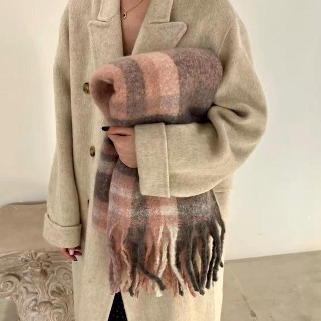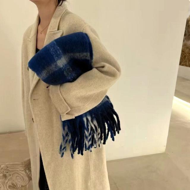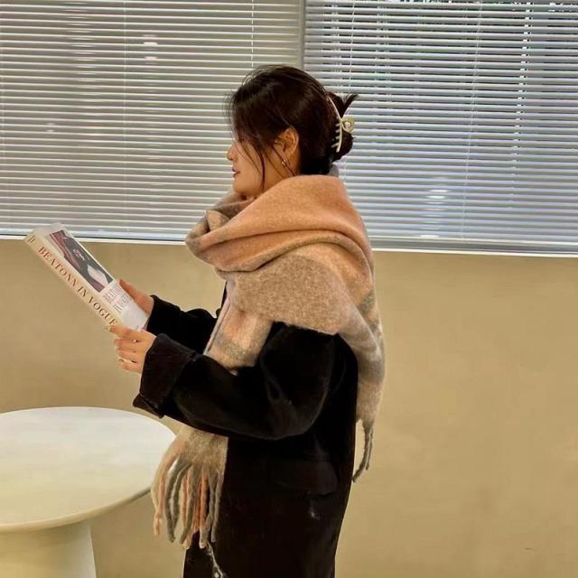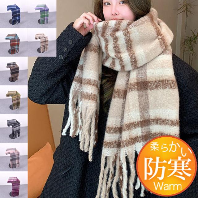 ストール レディース ポンチョ マフラー ショール チェック柄 カシミアタッチ タッセル バルキー 厚手 暖か 防寒 秋冬 通勤