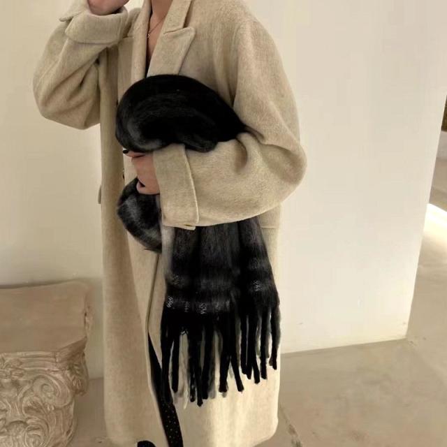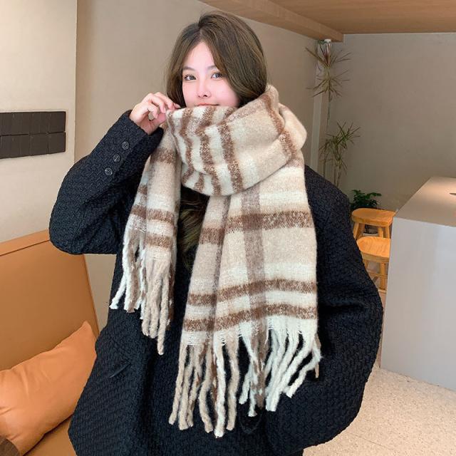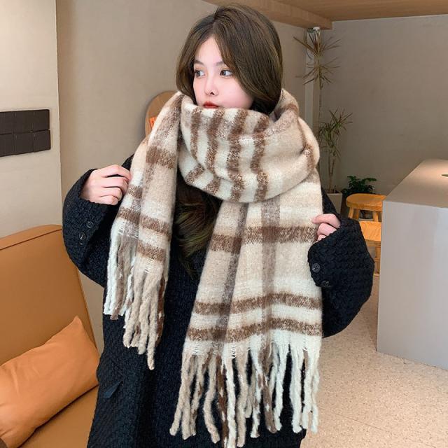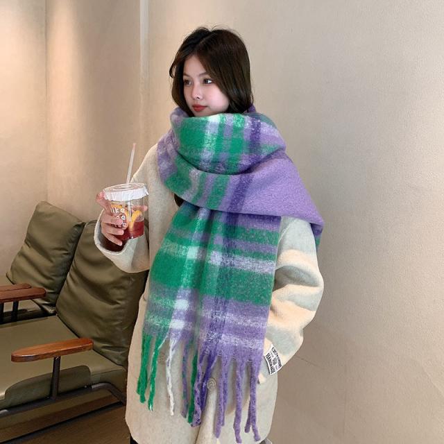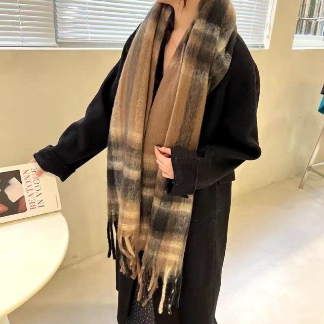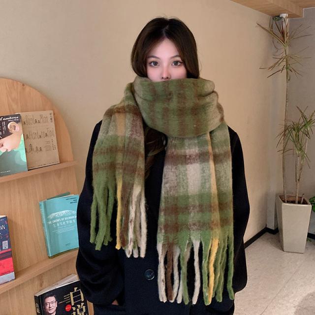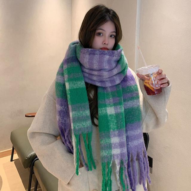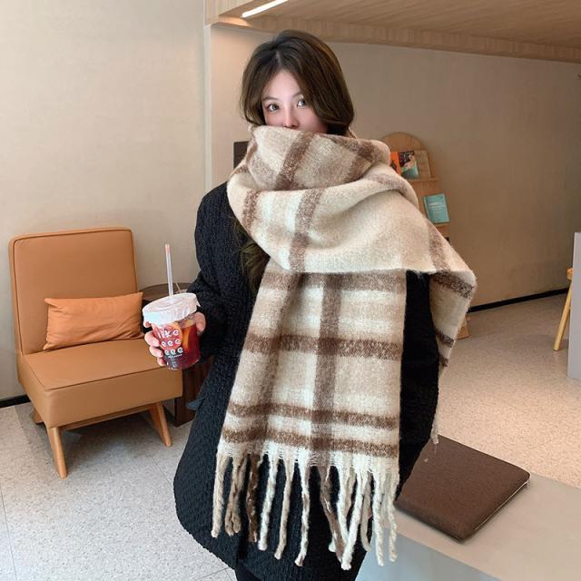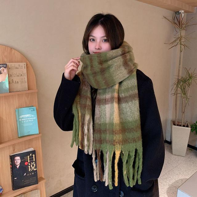 ストール レディース ポンチョ マフラー ショール チェック柄 カシミアタッチ タッセル バルキー 厚手 暖か 防寒 秋冬 通勤