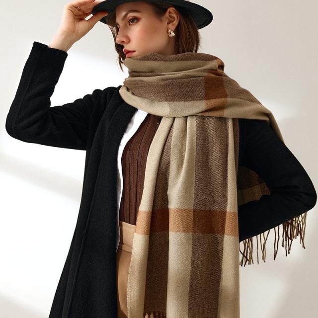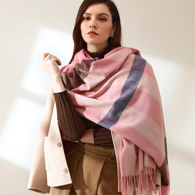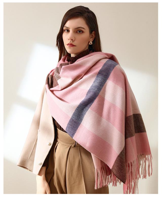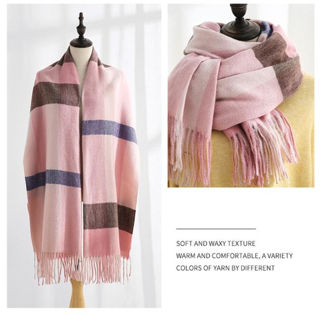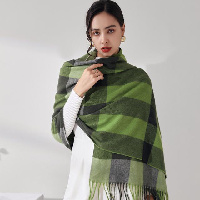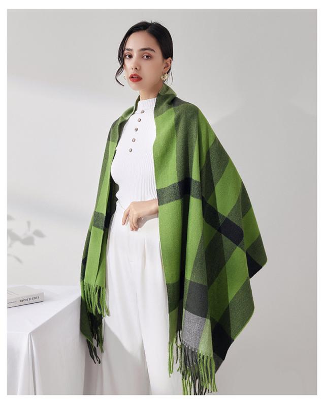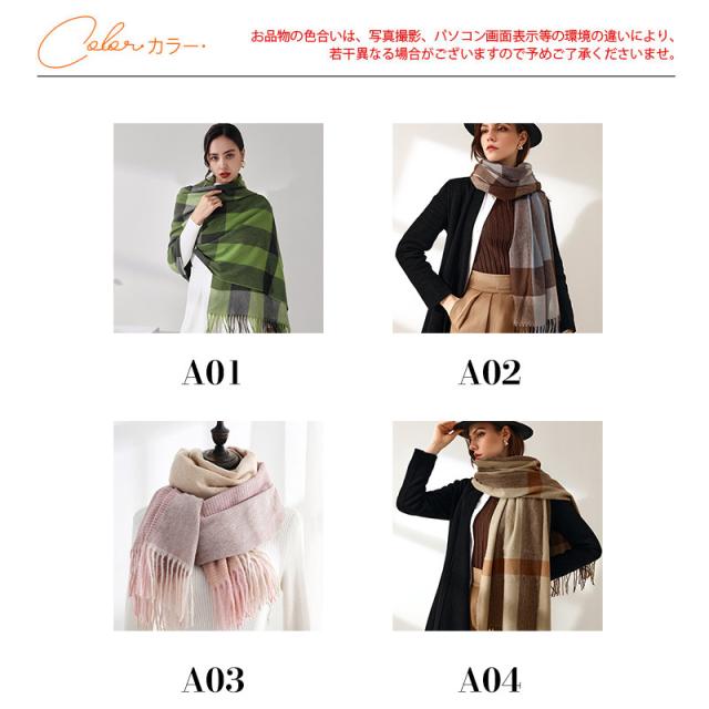 ストール レディース 大判 ポンチョ マフラー ケープ ショール フリンジ カシミアタッチ 配色 チェック柄 防寒 暖か 秋冬 お