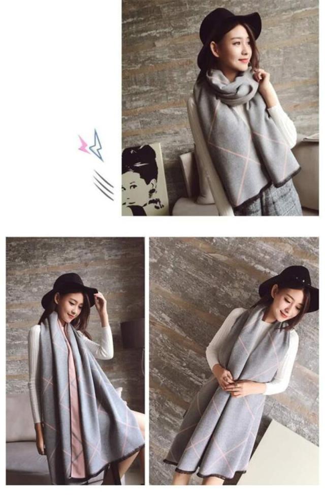 大判ストール レディース ストール マフラー カシミヤタッチ リバーシブル チェック柄 配色 暖か ふんわり オフィス 秋冬 日常