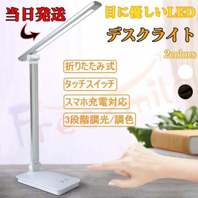 当日発送 LED デスクライト 折りたたみ 目に優しい タッチセンサー 卓上ライトテーブルライト 3段階調光調色 読書灯 コンセント付き 子供 USB PSE認証済み