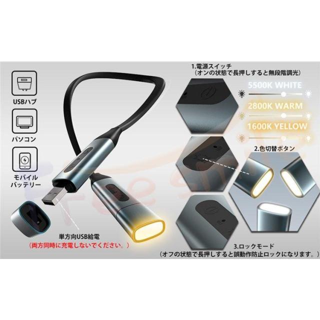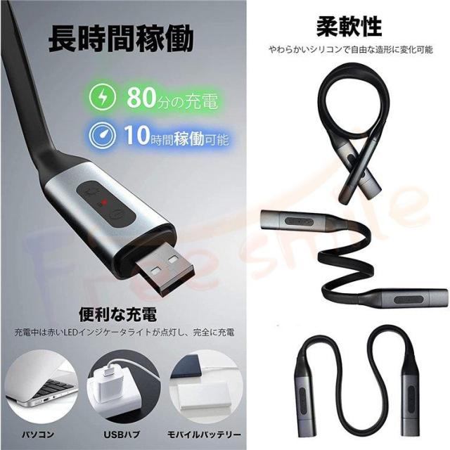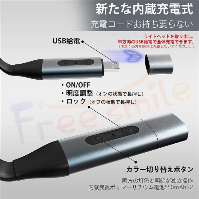 LEDネックライト 読書灯 3段調色 暖色 昼光色 白色 led ネックライト 首掛け式 首掛け式 USB充電式 停電時防災用 ブックライト USB充電 8時間連続作業 PSE認証済み