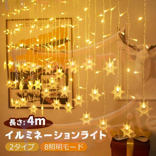 イルミネーション led 部屋 壁 ライト 屋外 4m 96球 チャーム19個 雪 蝶 イルミネーションライト 複数連結可能 8照明モード 明るい おしゃれ 天井 ガーランド PSE認証済み