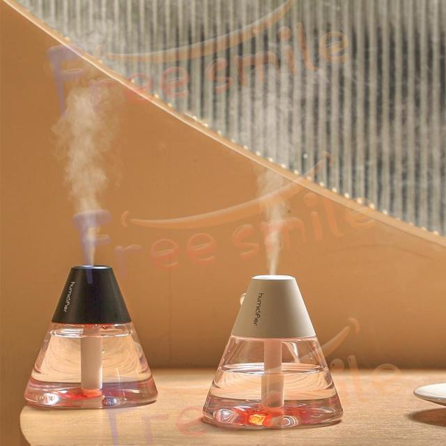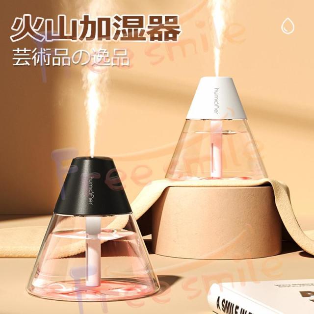 コンパクトな山型の加湿器です。まるで火山が噴火しているように蒸気が出て可愛いです。