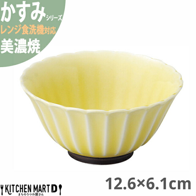 かすみ 黄 12.6×6.1cm ボウル 美濃焼 約180g 約360cc 日本製 イエロー 黄色 和食器 茶わん ご飯茶碗 飯碗 皿 鉢 丸 丸い 食器 サラダ おしゃれ 陶器 しのぎ 鎬 光洋陶器 レンジ対応 食洗器対応 ラッピング不可