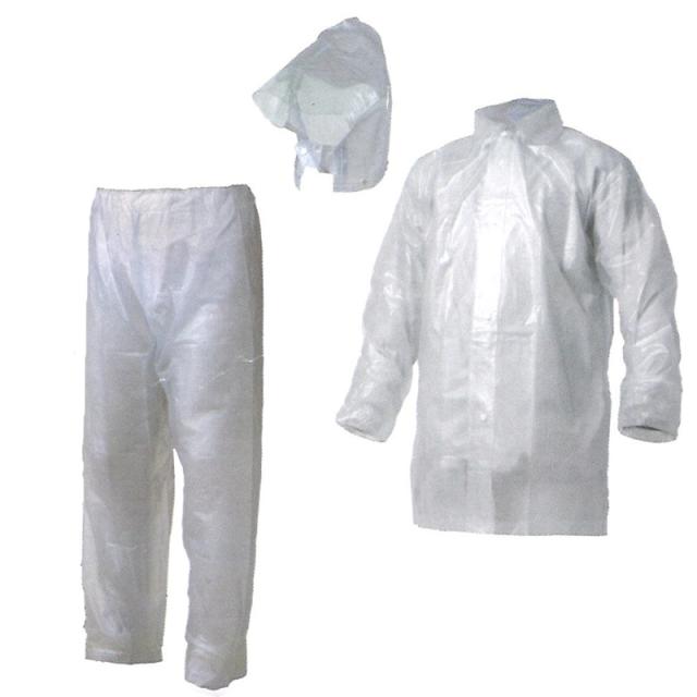 ・上下セットのレインスーツ。