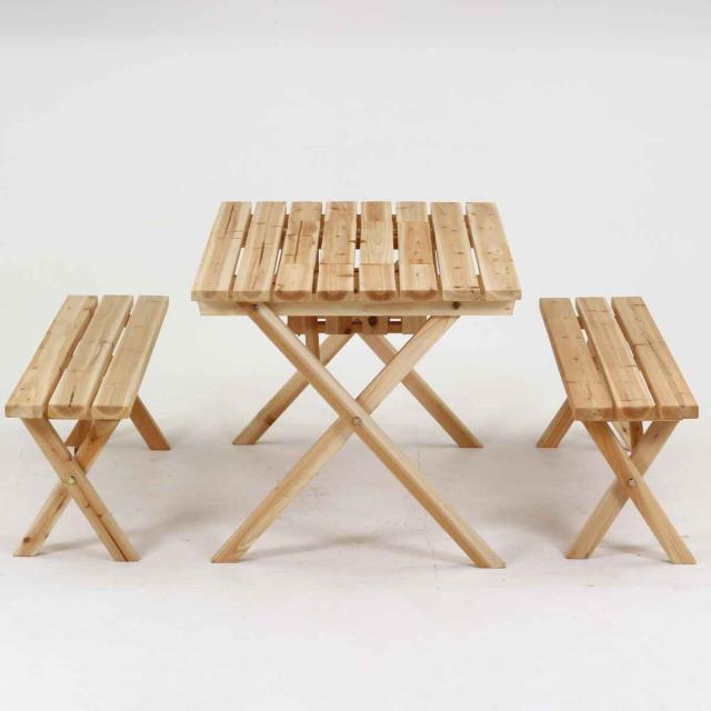 杉材を使用し天然木の風合いを活かしたシンプルなデザインのテーブル&ベンチセットです。