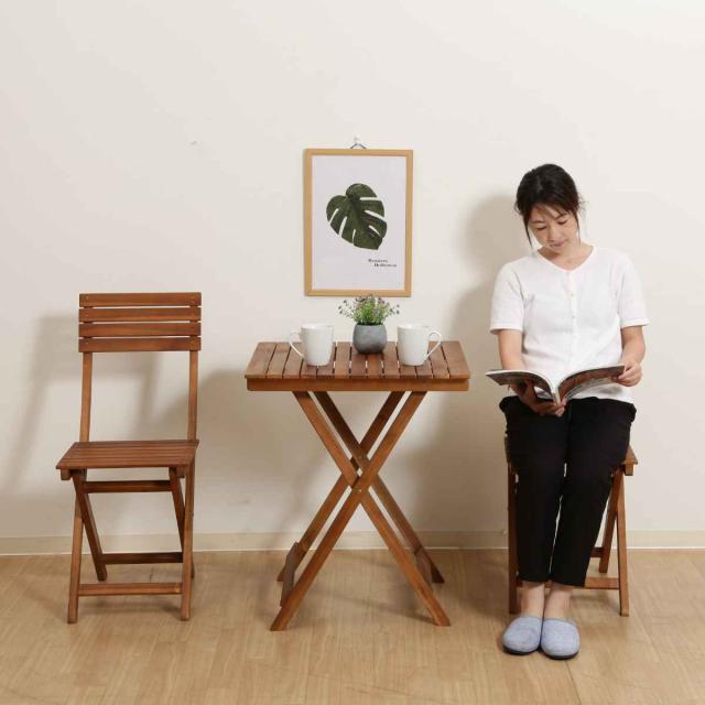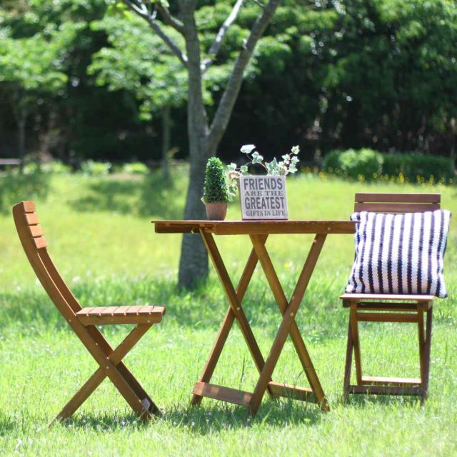 ガーデンテーブル ガーデン3点セット 木製 ( テーブル チェア ガーデンチェア セット ガーデン 庭 木 天然木 机 椅子 テーブルセット ウッドテーブル ウッドチェア フォールディング 3点セット 2人用 おしゃれ )