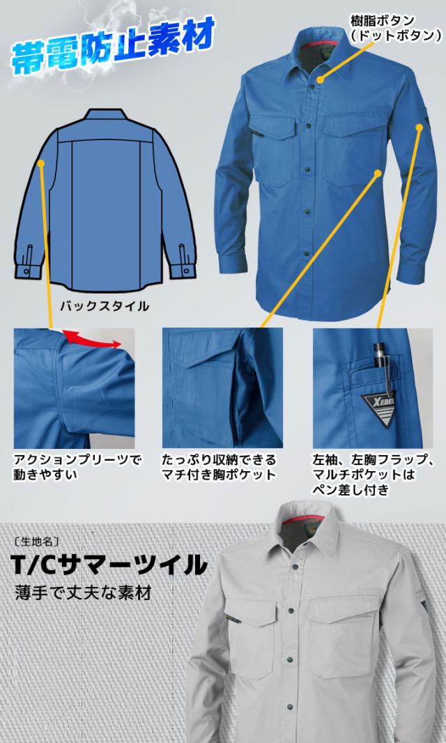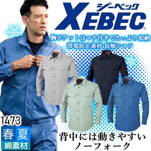 ジーベック 長袖シャツ 1473 帯電防止 カジュアル 作業服 作業着 春夏 XEBEC ユニフォーム 1474シリーズ