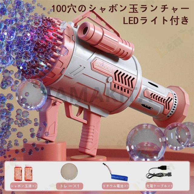 【LED付き】ボタンを押すと自動でライトが発光します。夜のシャボン玉は、幻想的でとてもキレイ! 【瞬間発射数100穴】シャボン玉業界最大級のシャボン玉の量に思わずびっくり!パーティー盛り上がること間違いなし!両手持ちでさらに迫力が!