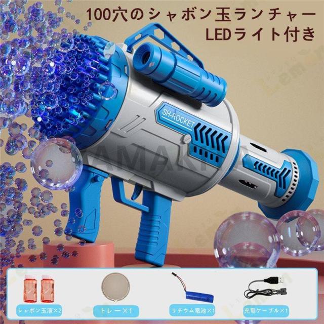 シャボン玉 電動 バズーカ 道具 シャボン玉液 シャボンマシーン おもちゃ 自動 バズーカ砲 パズーカランチャー パズーカバブルガン パズーカロードケース バブルガン 結婚式 100穴 送料無料