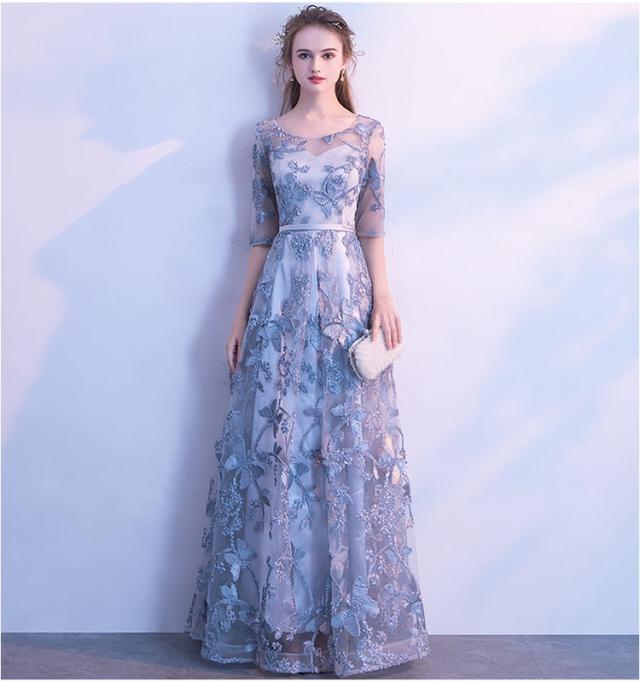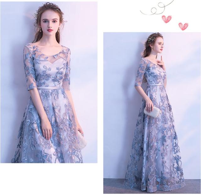 【5サイズ】ロングドレス レディース ピアノ 二次会 発表会 大人 ロング パーティードレス ドレス 結婚式 ファスナータイプ ワンピース フォーマル 謝恩会 食事会 披露宴 お呼ばれ 上品 グレー da090t2