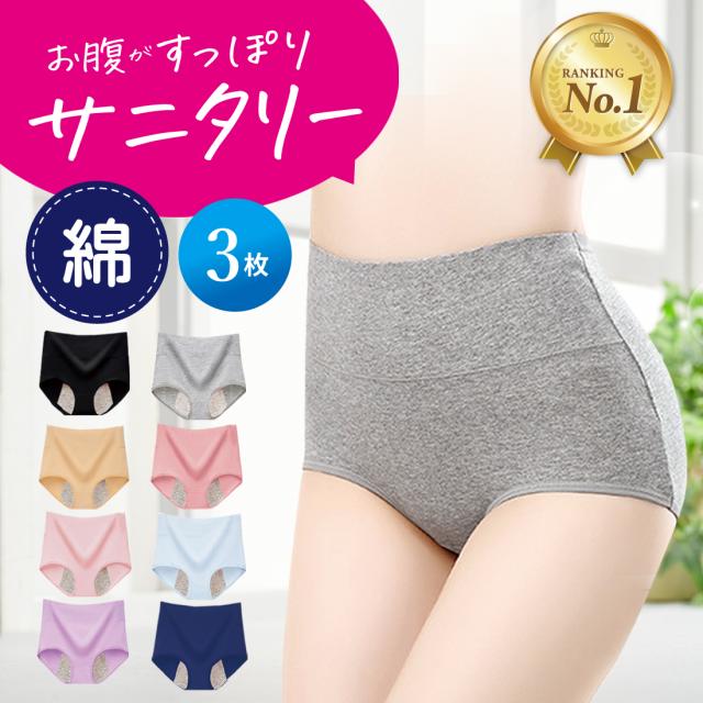 [3枚セット] 1位 1枚660円 ハイウエスト サニタリーショーツ レディース 下着 サニタリー パンツ 深め 深履き 無地 まとめ買い 3枚組 保温 効果 子宮温活 温活 冷え 防止 大きいサイズ ストレッチ 綿 コットン 通気性 締め付けない クロッチ 綿100% リノウル