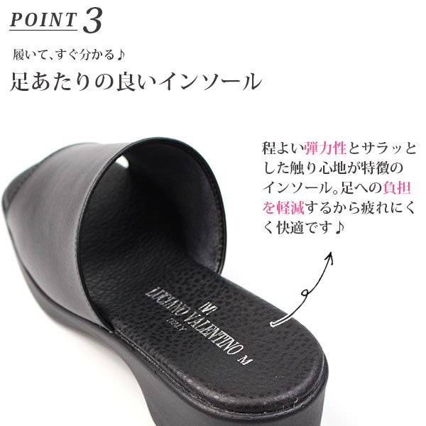 サンダル レディース 靴 女性 オフィス ウェッジソール 日本製 軽量 会社 黒 LUCIANO VALENTINO 6090
