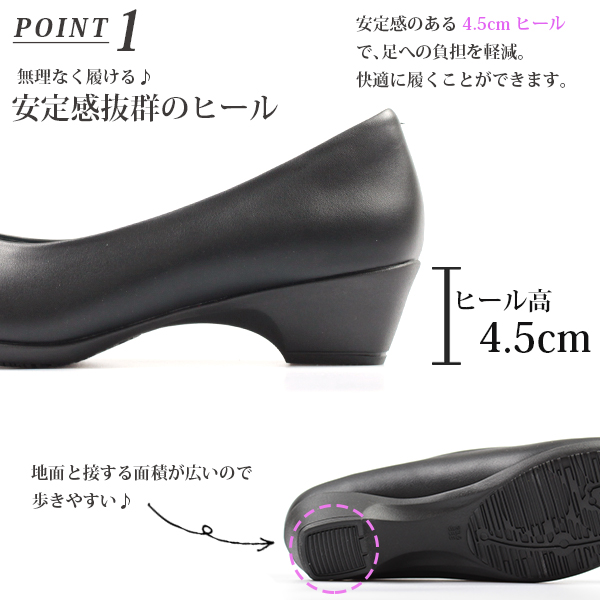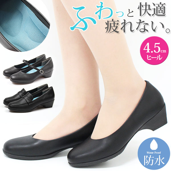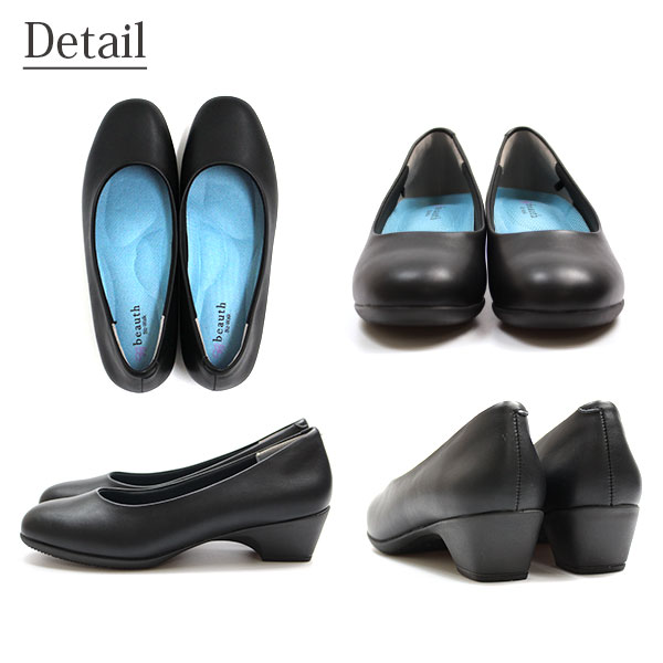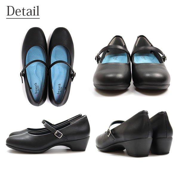 レインパンプス レディース 痛くない 柔らかい 幅広 ローヒール 4.5cm 靴 疲れない 黒 ブラック パンプス 防水 防水パンプス ストラップ ローファー 結婚式 フォーマル オフィス 冠婚葬祭 仕事用 大きいサイズ 小さいサイズ ビュース beauth BT-601 BT-602 BT-606