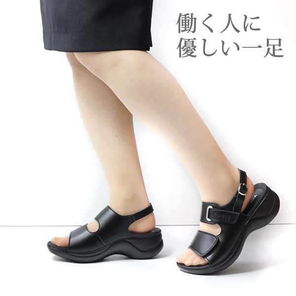 リゲッタ サンダル レディース 靴 オフィス 黒 ブラック コンフォート 厚底 疲れにくい Re:getA RW-1001