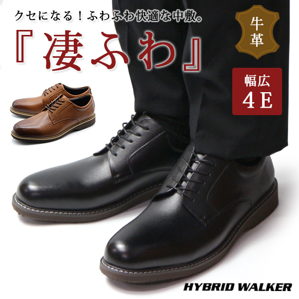 ビジネスシューズ メンズ 靴 カジュアル 黒 茶 ブラック ブラウン 牛革 幅広 4E 軽い 軽量 HYBRID WALKER HW-132 平日3〜5日以内に発送 ビジカジスタイル ふわふわ中敷
