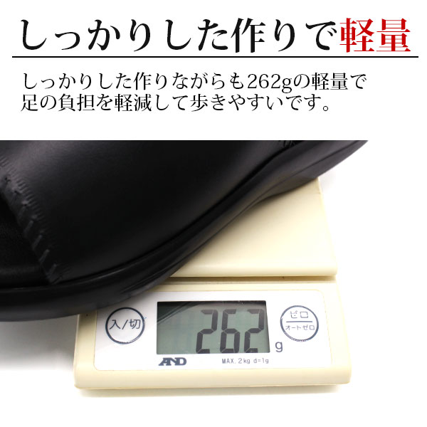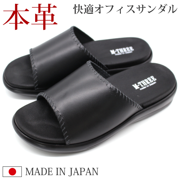 メンズ サンダル 靴 黒 ブラック オフィスサンダル 日本製 本革 仕事 会社 軽量 軽い エムスリー M.M.M 2019