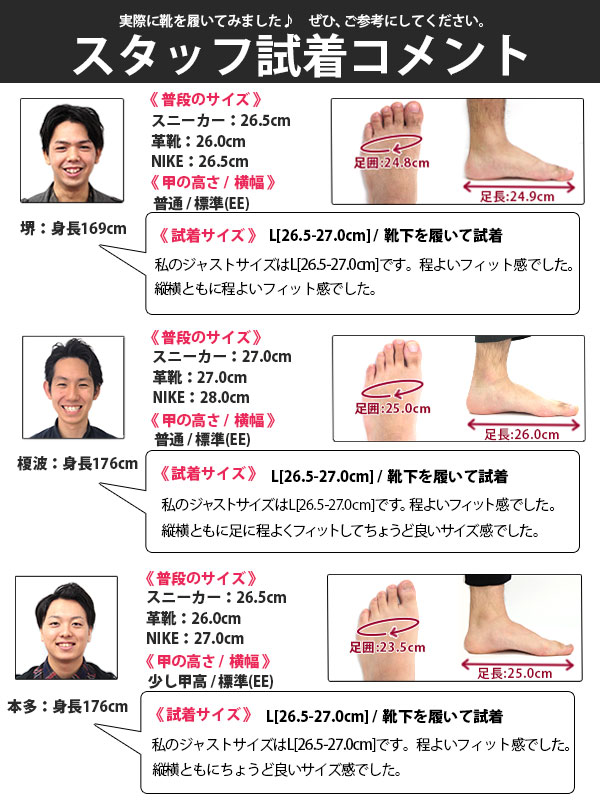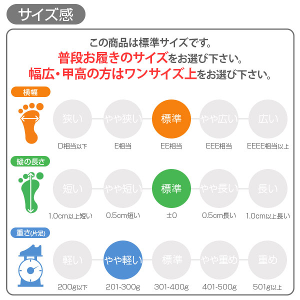 甲高、幅広の方→「0.5cm大きめ」