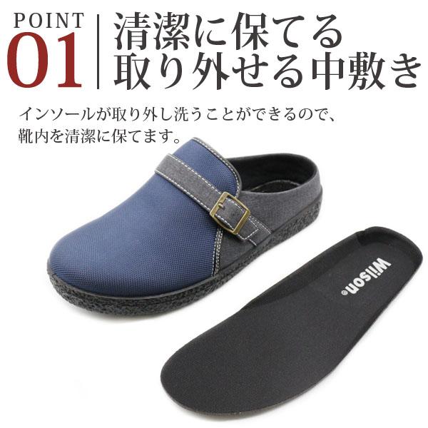 メンズ サンダル 靴 サボ スリッポン 黒 紺 深緑 ブラック ネイビー カーキー 軽い 軽量 wilson 2201