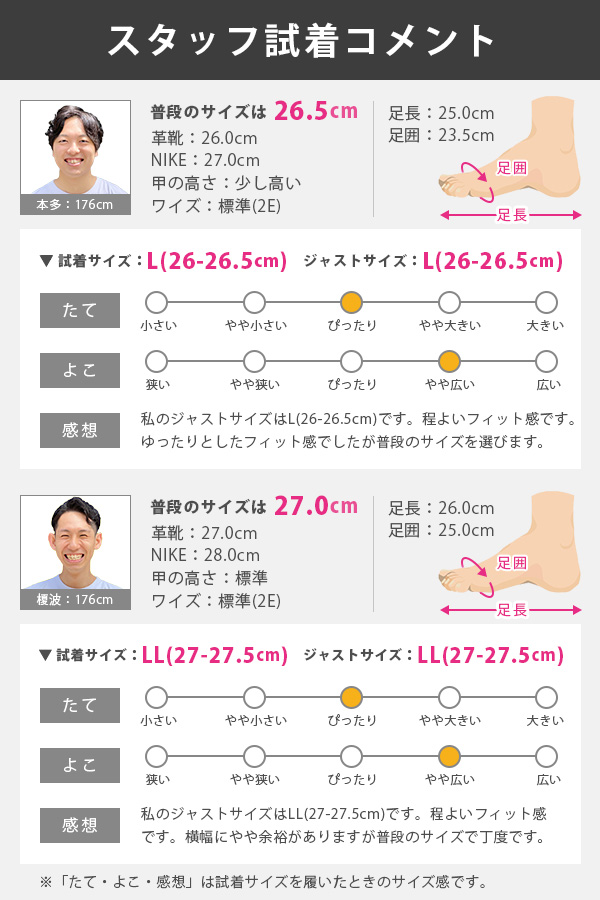 【男性スタッフSHO 普段のサイズは、革靴26.5cm/日本製スニーカー27.0cmです】