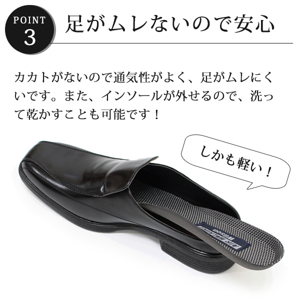 | Wilson AIR WALKING 急な来客でもサッと履ける、オフィス対応サボビジネスシューズ。 オフィス履きにちょうどいいサボタイプビジネスシューズが登場。かかとなしだから、脱ぎ履きがとってもラクラクでムレにくい!インソールは取り外して洗えるので、靴内を清潔に保てます。さらに、メッシュカップインソールを採用しているので通気性も良くいつでも快適です。レースアップタイプなので、シンプルに合わせやすい一足です。あなたのデスクに一足あると、とっても重宝しますよ^^ | ||||||||||||