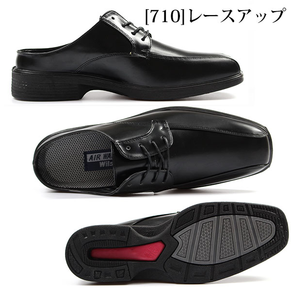 ビジネス シューズ メンズ 靴 サンダル 黒 オフィス 会社 デスクワーク ワイズ 3E 幅広 サンダル 革靴 紳士靴 軽量 軽い 足ムレ防止 かかとなし ビットタイプ レースアップ ウィルソン Wilson AIR WALKING ミュール