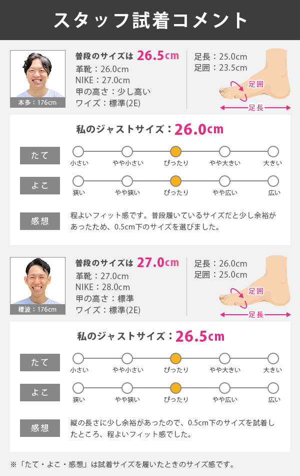【男性スタッフmoto 普段のサイズは、革靴26.0cm/日本製スニーカー26.5cmです】