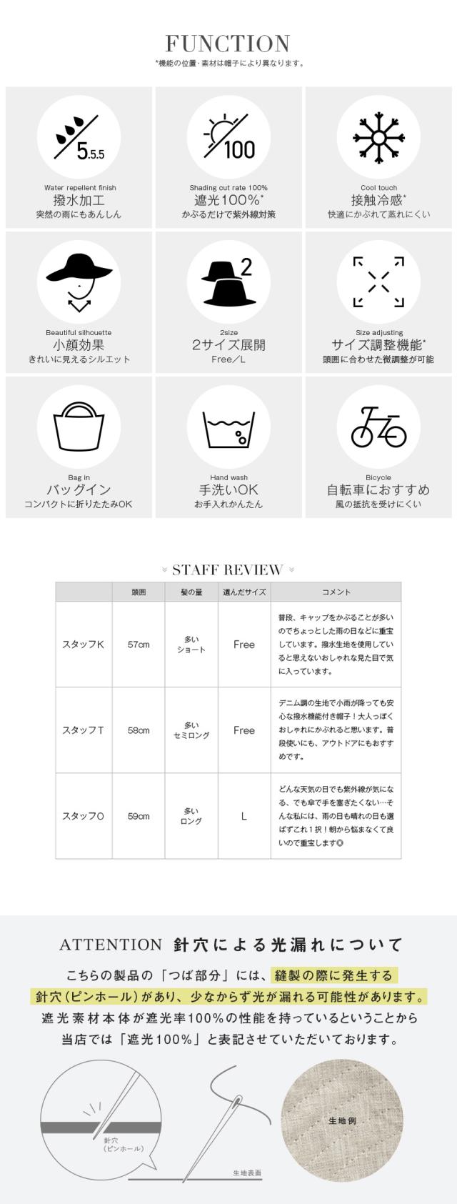 | 頭囲 | 高さ | つば | |