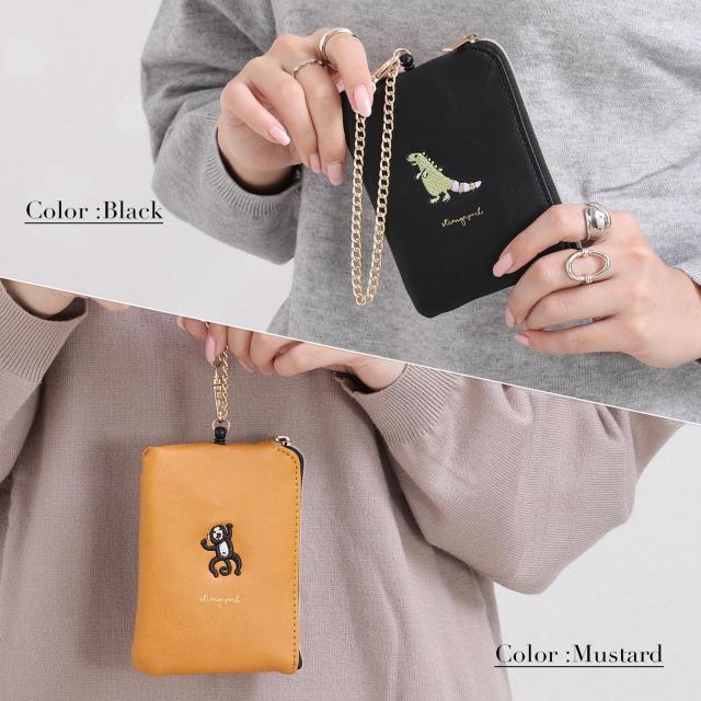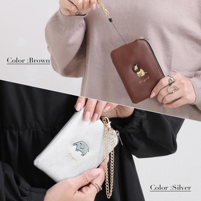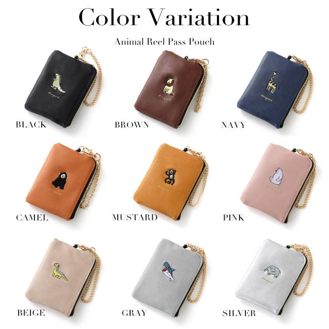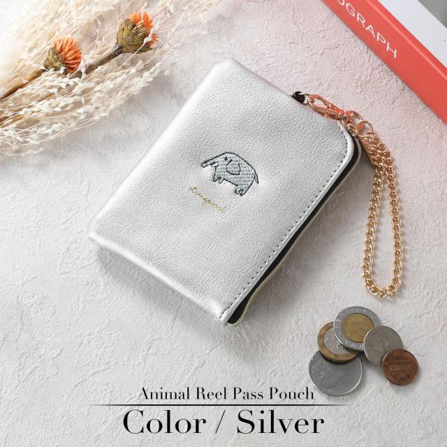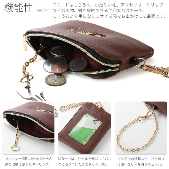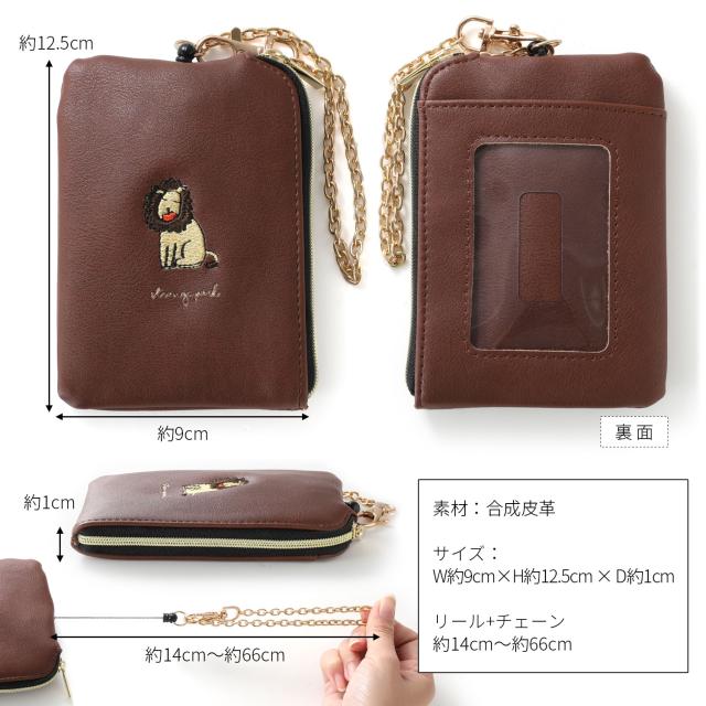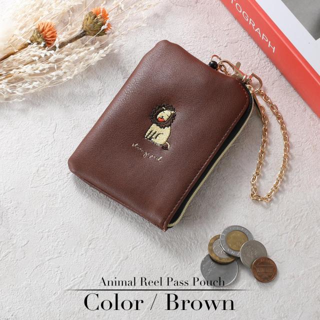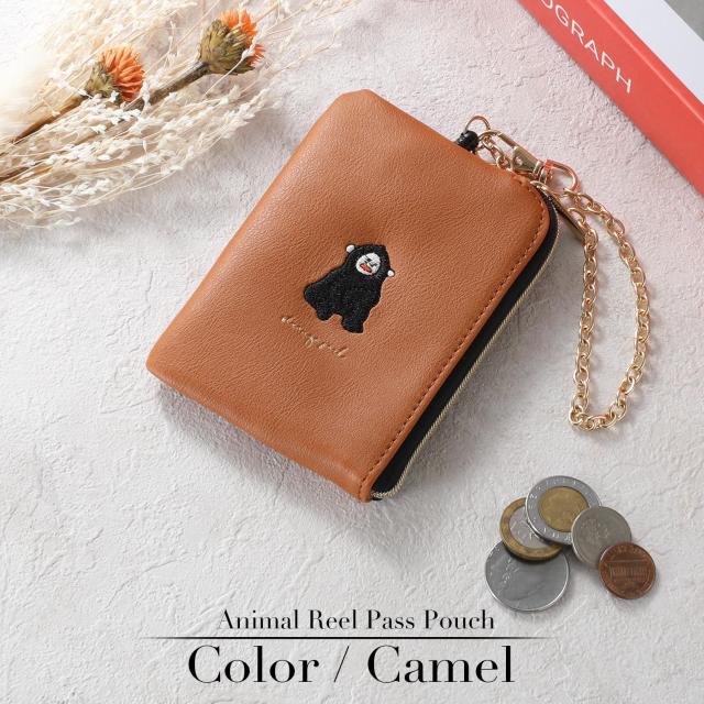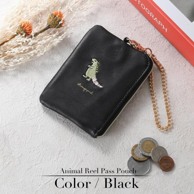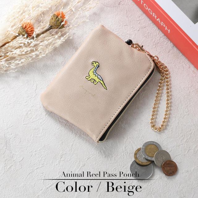小銭入れ パスケース リール付き レディース コインケース キーケース キーチェーン付き ポーチ 定期入れ レザー 動物 アニマル 刺繍 キャラクター 使いやすい 小さい コンパクト 薄い 薄型 軽量 ファスナー IC カード ブランド 無地 シンプル 女性 女の子 おしゃれ かわいい