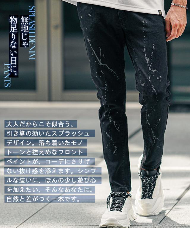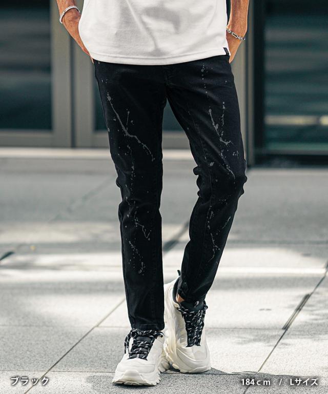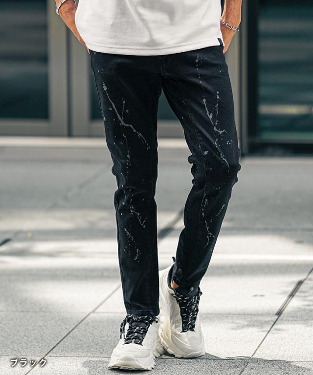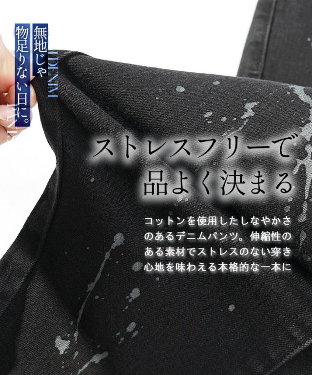 ジーパン メンズ デニムパンツ メンズ ジーンズ メンズ デニム パンツ ストレッチ ジーンズ YKK ファスナー レギュラー インディゴ 黒 ブラック 大きいサイズ XL LL ペイント ペンキ お兄系 オラオラ系 ちょいワル 春服 春 春新作 新作