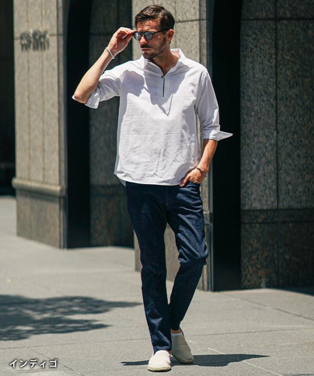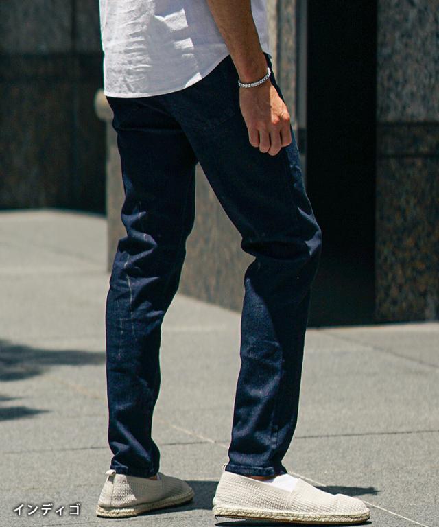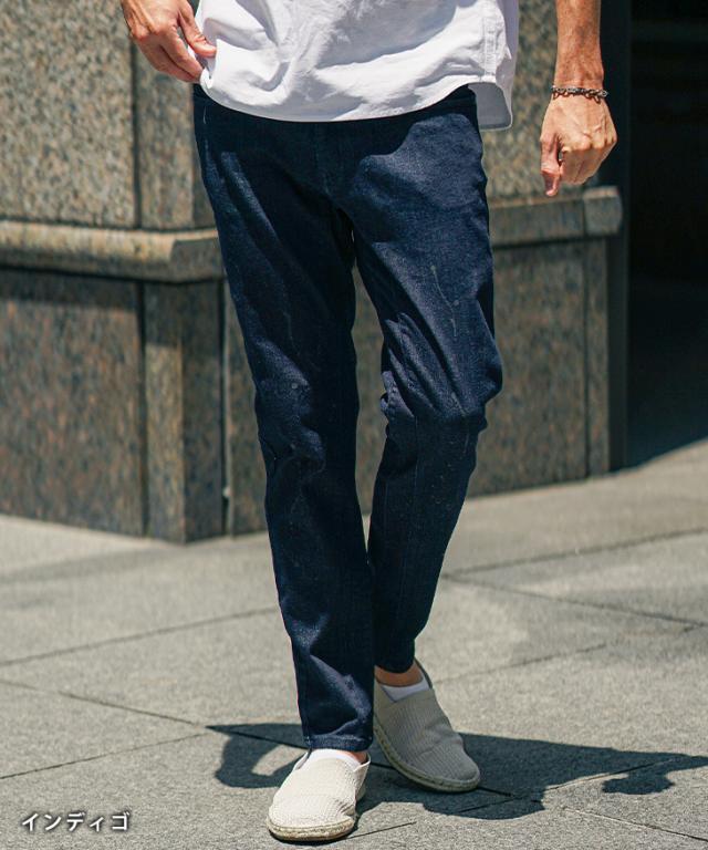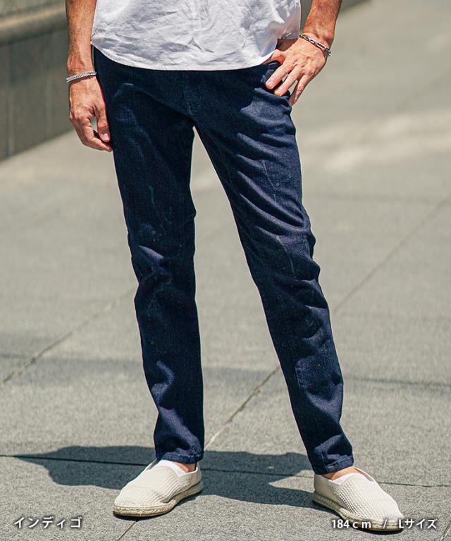 ストレッチの効いたデニム生地を採用し、