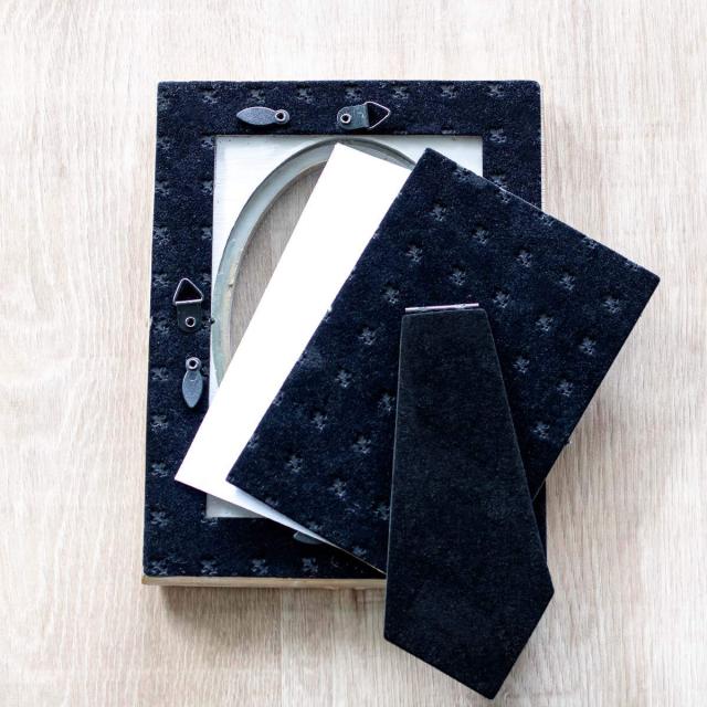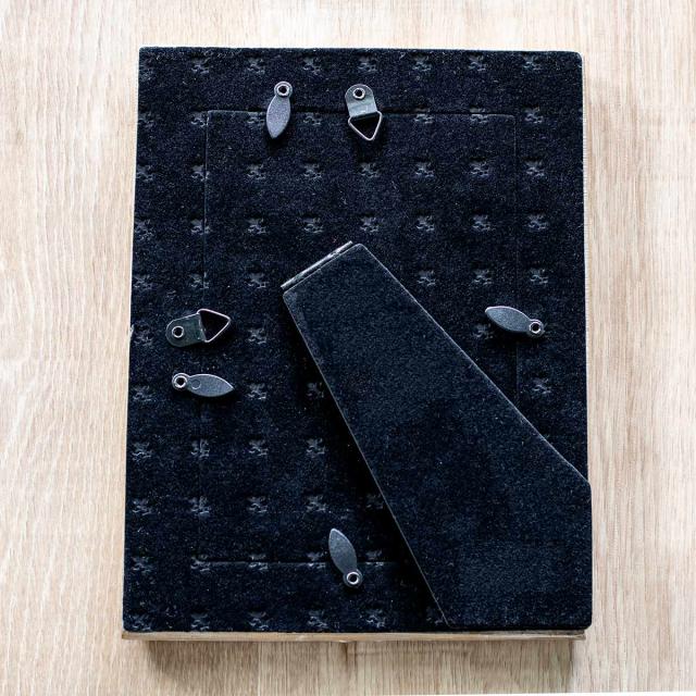 扱いやすいシンプルなつくりで写真の入れ替えも簡単に行えます。また、背面には高級感のあるベルベット調の素材を使用しています。
