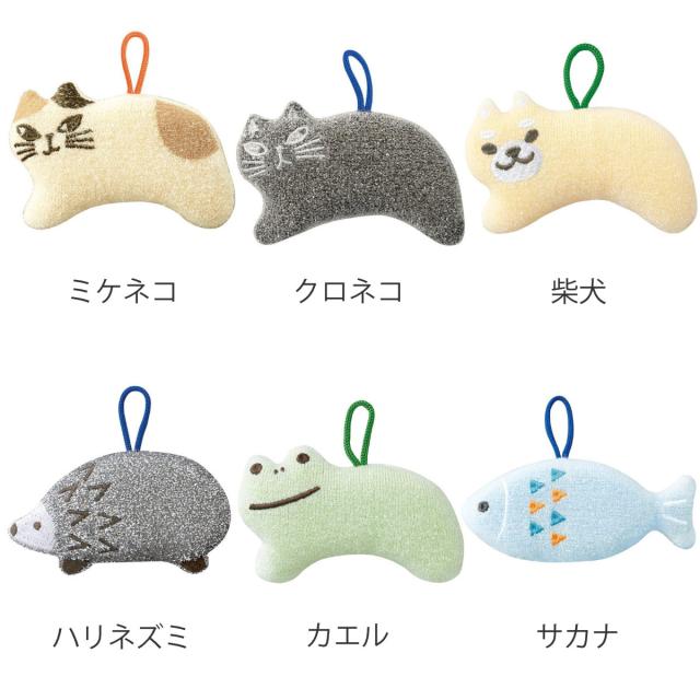 スポンジ キラキラおそうじスポンジ アニマル ( 水回り用スポンジ 洗面所 キッチン かわいい 掃除用品 掃除用スポンジ ループ付き プレゼント プチギフト 掃除グッズ 猫グッズ イヌ ハリネズミ カエル サカナ )