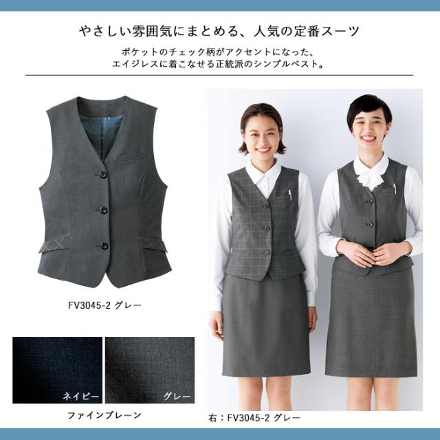 事務服 ベスト レディース スーツ 制服 nuovo 春夏 秋冬 FOLK ポケット付き グレー【送料無料】女性 医療事務 受付 接客 冠婚葬祭 仕事 結婚式 エステ サロン セレモニー オフィス フォーマル 上品 シンプル おうちで洗える agesugi_sfa