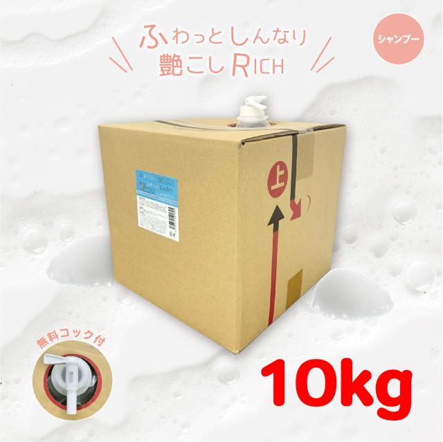 ふわっとしんなり艶こしリッチシャンプー 10kg リピート価格(業務用,理美容室,へアサロン,ホテル,民宿,旅館,宿泊施設,銭湯,サウナ,温泉施設,高品質低価格,自社工場直販,大容量,ヘアケア,肌に優しい,ローズムスクの香り,専用コック付)