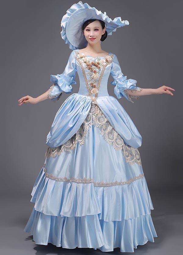 中世 貴婦人ドレス ステージ 衣装 中世ドレス ヨーロッパ 貴族 王族服 ジュリエット カラードレス 演出 現代劇演出 ヨーロッパ風 演出 パーティードレス 青 シャンパン色 ec171t2t2la