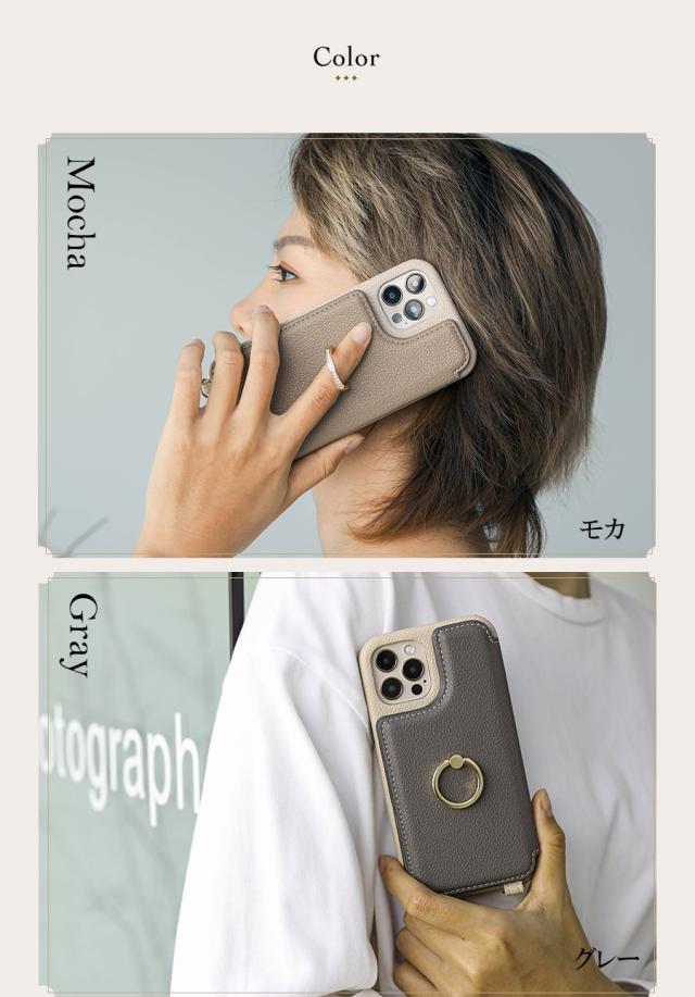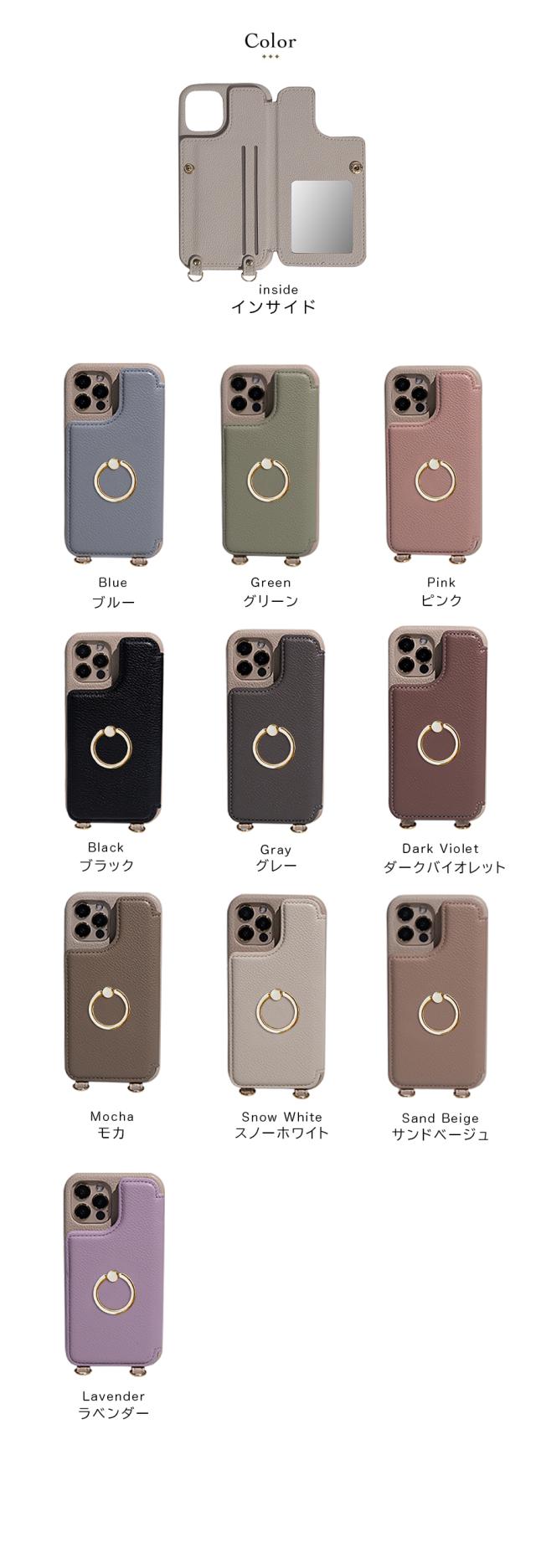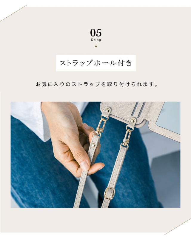 - リングストーンがとにかくおしゃれで、スマホケースの生地もしっかりしていて、色味も落ち着いた色が何種類かあったので、とても良かったです??