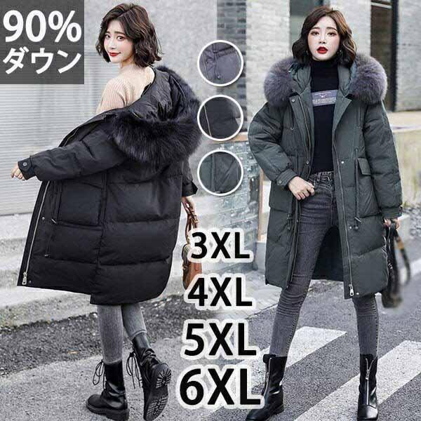 【レビュー投稿で+5%還元】ぽっちゃり 大きいサイズ ダウンコート ダウンジャケット ダウン90% レディース ラグランスリーブ ミディアム丈 エコファー アウター フード付き おしゃれ 細見え 美シルエット 暖かい 3XL 4XL 5XL 6XL 30代 40代 50代 大人 冬服 防寒 防風 厚手