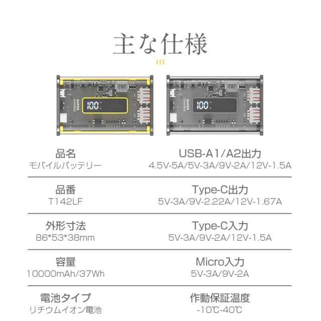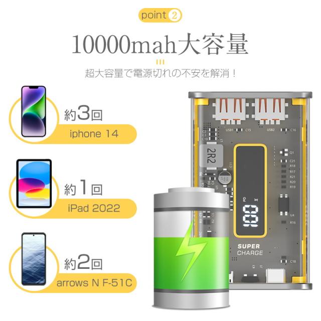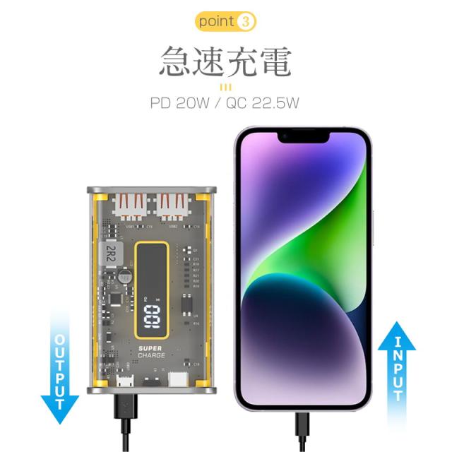 モバイルバッテリー 10000mAh 大容量 22.5W PD 20W 急速充電 透明設計 急速充電 3つ出力ポート 3台同時充電 防災電源 急速プロトコル対応 iPhone17/iPhoneAir対応 【PL保険加入済み製品・安心】
