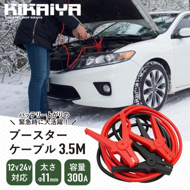 ブースターケーブル 3.5m 300A バッテリー ケーブル 日本語説明書 収納袋 12V 24V 25sq 11mm バッテリー上がり 雪対策 普通車 大型トラック アウトレット特価 KIKAIYA