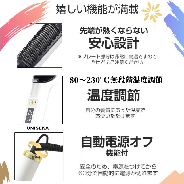 ヒートブラシ コームアイロン ヘアアイロン MAX230℃ ストレートアイロン カールアイロン ヒートブラシ ブラシアイロン ブラシ