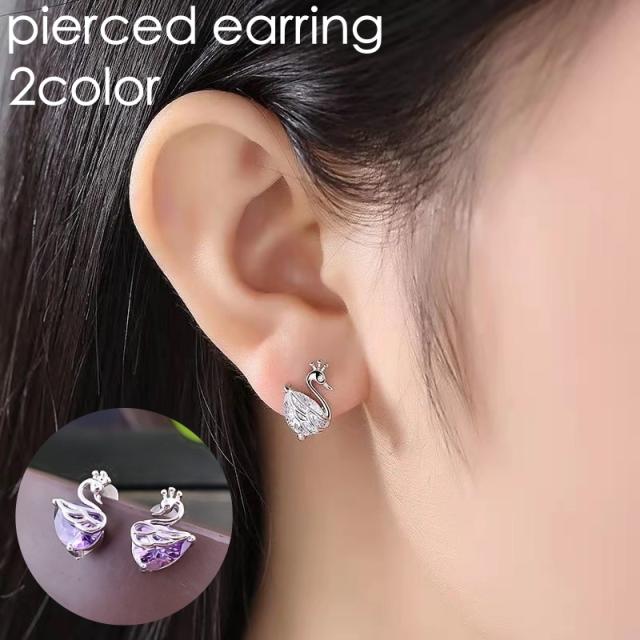 ピアス スタッドピアス レディース 女性 アクセサリー 小ぶり 白鳥 スワン ラインストーン お洒落 大人可愛い 耳飾り ファッ