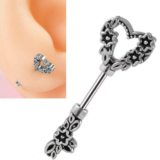 ハートと星と花をデザインしたクラシックな鍵がモチーフの20ゲージのストレートバーベル型ボディピアス。