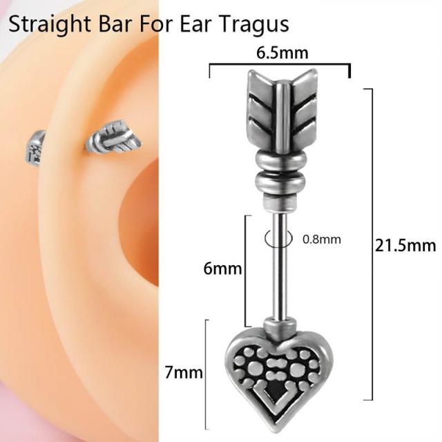 [20G ヘリックス ボディピアス] ハートアローストレートバーベル 軟骨ピアス 20ゲージ ボディーピアス 弓矢 厄除け 天使 破魔矢 メンズ レディース シルバー 銀色 男子 女子 プレゼント トラガス ダイス ロック ルーク コンク 軟骨 ファッションピアス 0.8mm 細い ネジボール
