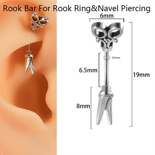 鋏(はさみ)がモチーフのシャフトが曲がった20ゲージのカーブバーベル型ボディピアス。