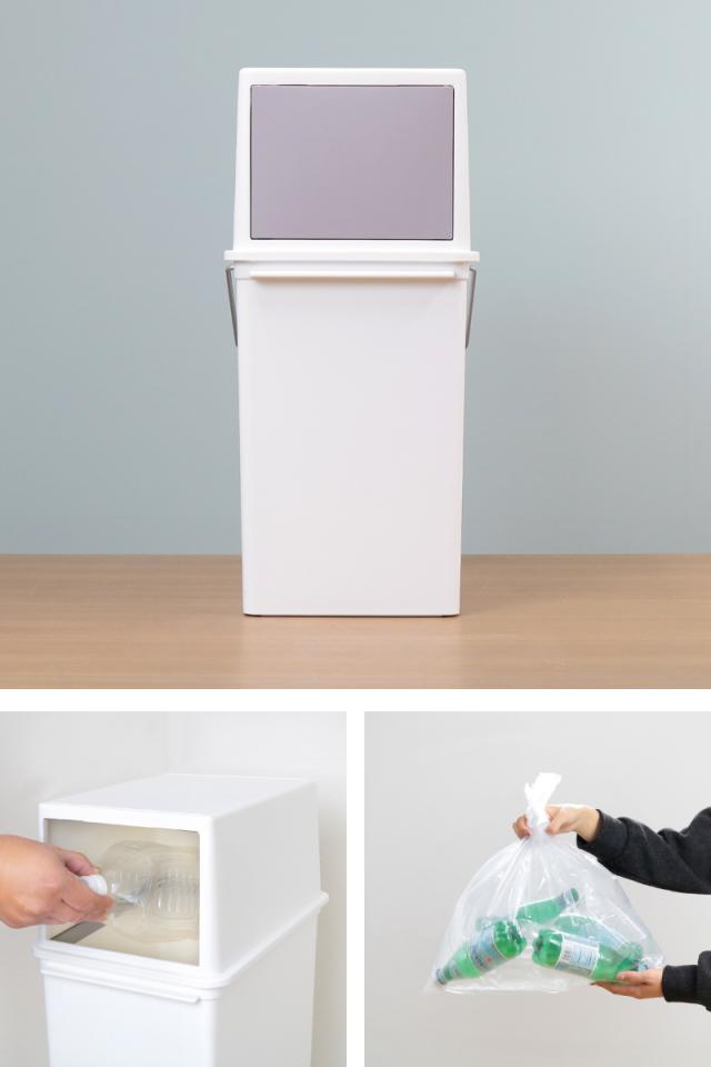 17Lは少し小さめに感じますが、ビンや缶のリサイクルゴミ用に使ったり、ゴミ積み重ねて2段にするにはちょうどいいサイズ感です。500mlのペットボトルを潰さずに入れると約14本捨てることができます。