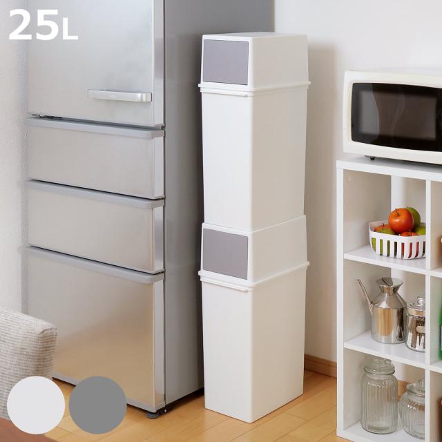 ゴミ箱 25L フロントオープン トラッシュビン 幅23cm ( ごみ箱 25リットル スイング フロント オープン 分別 積み重ねOK ふた付き シンプル ホワイト 棚下OK コンパクト スリム スタッキング ゴミ箱 ふた付き ゴミ箱 おしゃれ)