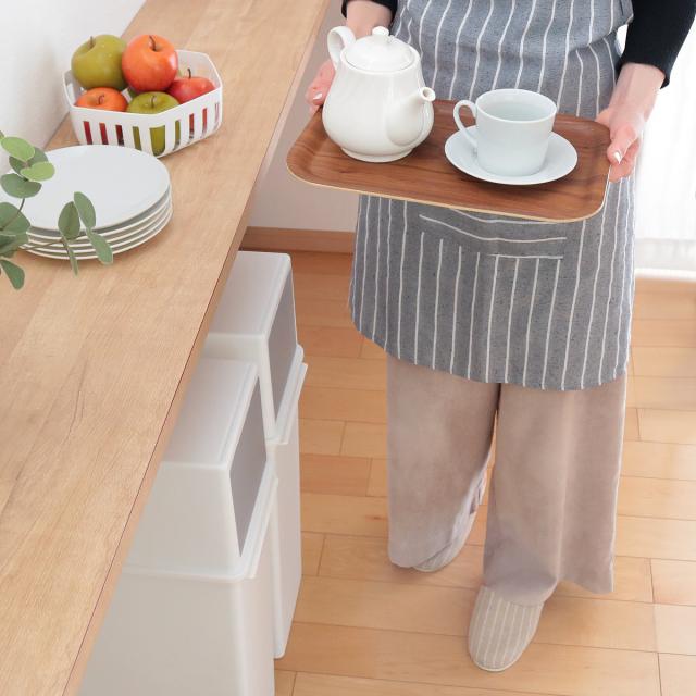 フロントオープンのふたなので、縦に積み重ねて使用することができるゴミ箱です。単体でのご使用はもちろん、17Lと25Lのサイズ違いを積み重ねて上下でゴミを分別することが可能です。わずか約幅24cmで幅を取らず、キッチンの隙間収納にもおすすめです。ふたの上部にはずれないように溝が付いており、しっかりと積み重ねることができます。