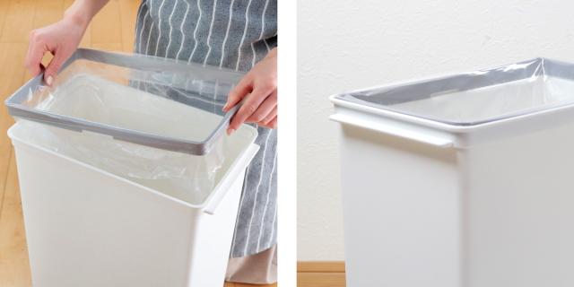 本体内側には、ゴミ袋を装着しやすい袋止めが付いています。ゴミ袋が外から見えないようにセットでき、取り付けも簡単です。